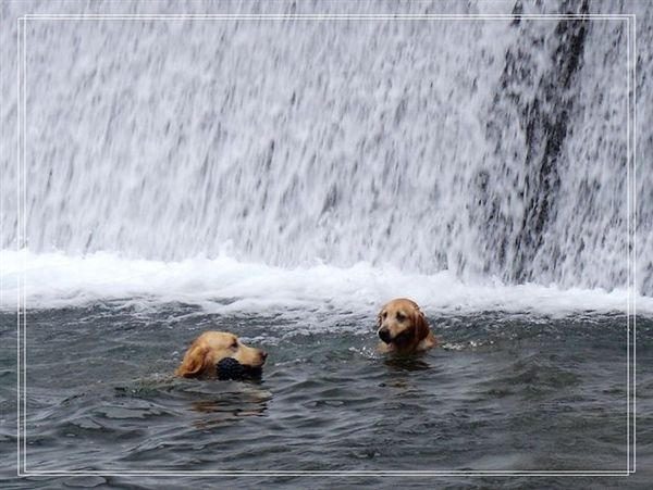 這是養了黃金妹之後,第一次帶兩隻狗到"野外"玩水