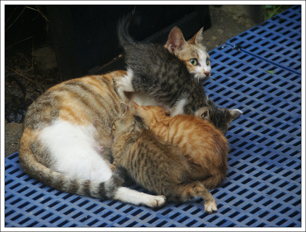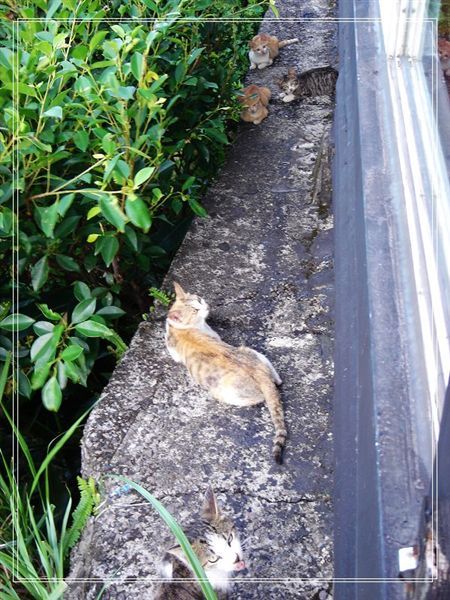 小貓們一臉無辜樣,髒兮兮的八字眉小臉,好可愛~~