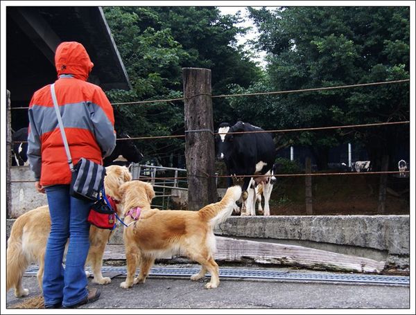 走到牛欄邊,有一頭牛可能以為接近牛欄的人都是要餵她吃草的
