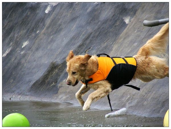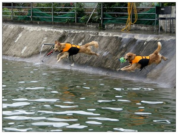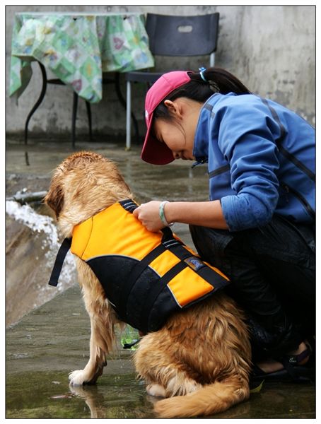 6.穿救生衣的時候,別的狗如果突然發瘋要咬Duke,應該比較咬不到肉...