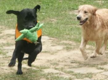 Duke看到後有他相遇故知的興奮,硬是也要一起叼回來