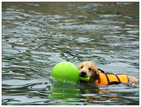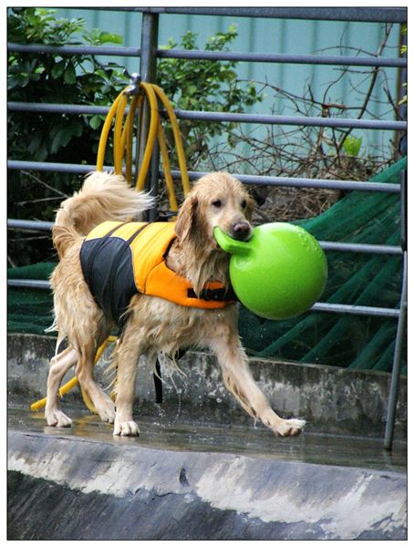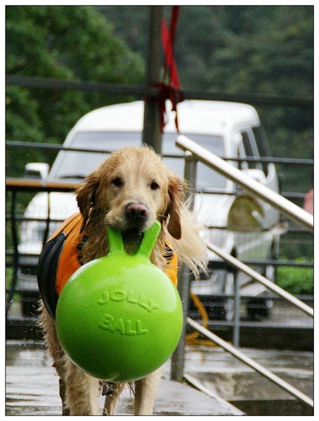 尤其是上到陸地之後,咬著大球咚咚咚地跑來跑去的樣子