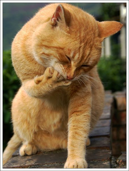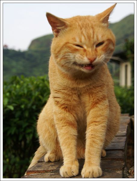 以及無視於他們存在繼續坐在窄窄的圍牆上、不怕被推下去持續啃著雞爪的大橘子
