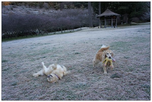 不但在結冰的草地上嚕了好久,還不斷的以快樂的腳步高速在草地上咖ㄘ咖ㄘ