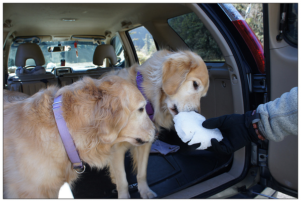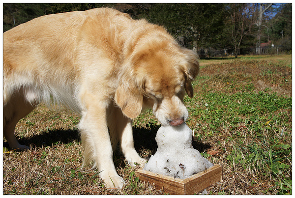 Duke對雪十分感興趣,倒是一向大膽開口咬的妹,這天遲疑著一直不敢下口